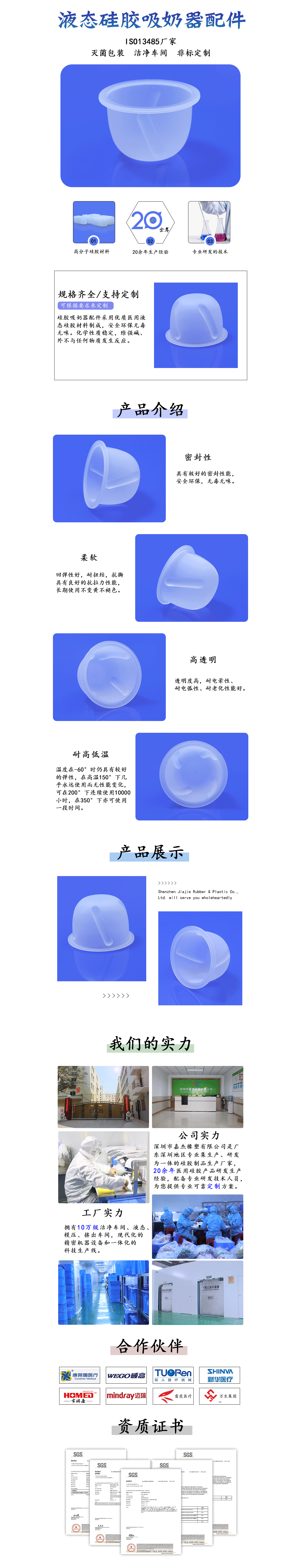 采用優(yōu)質(zhì)硅膠原料制作,具有良好的物理特性,無(wú)毒無(wú)味且沒(méi)有過(guò)敏反應(yīng),柔軟高透明可高溫消毒