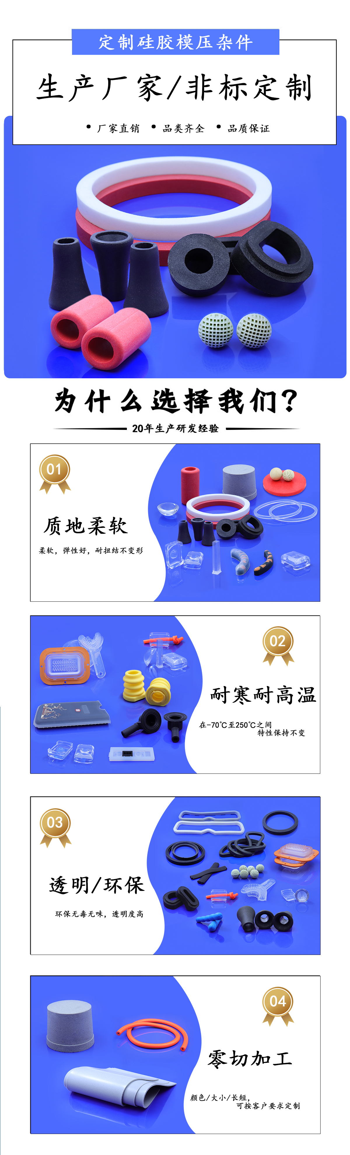 定制硅膠模壓雜件性能: