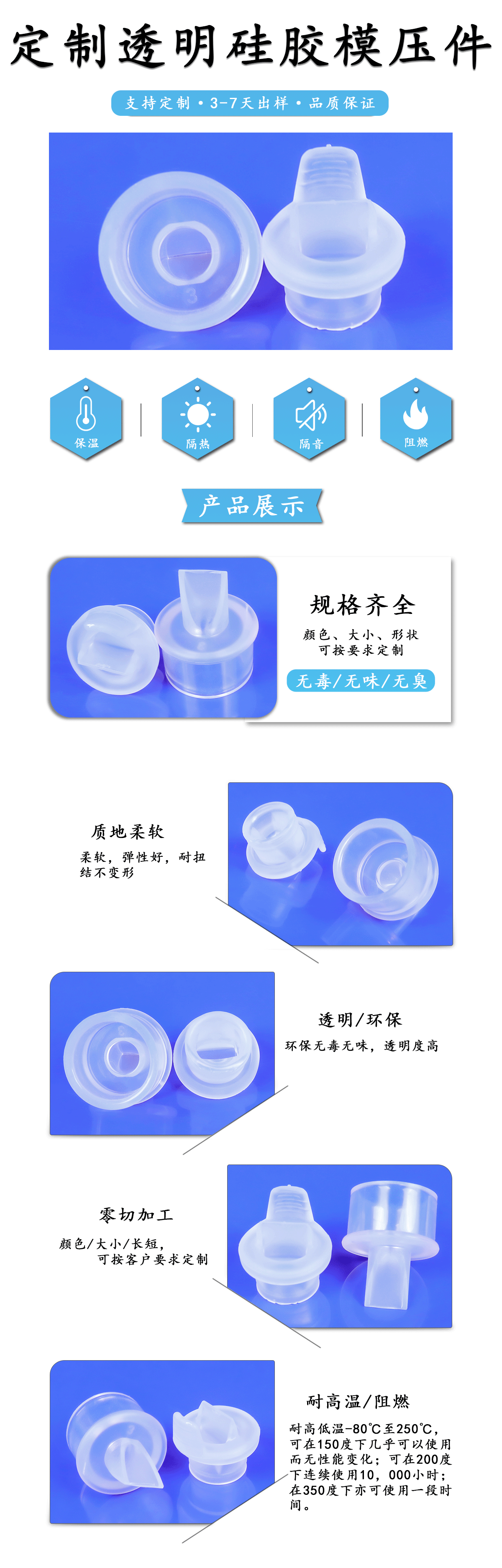 定制透明硅膠模壓件性能: